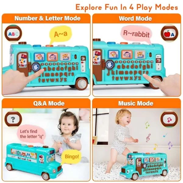 🚌 4 Play Modes – Learn & Play in One Toy! Includes Number & Letter Mode, Word Mode, Q&A Mode, and Music Mode.